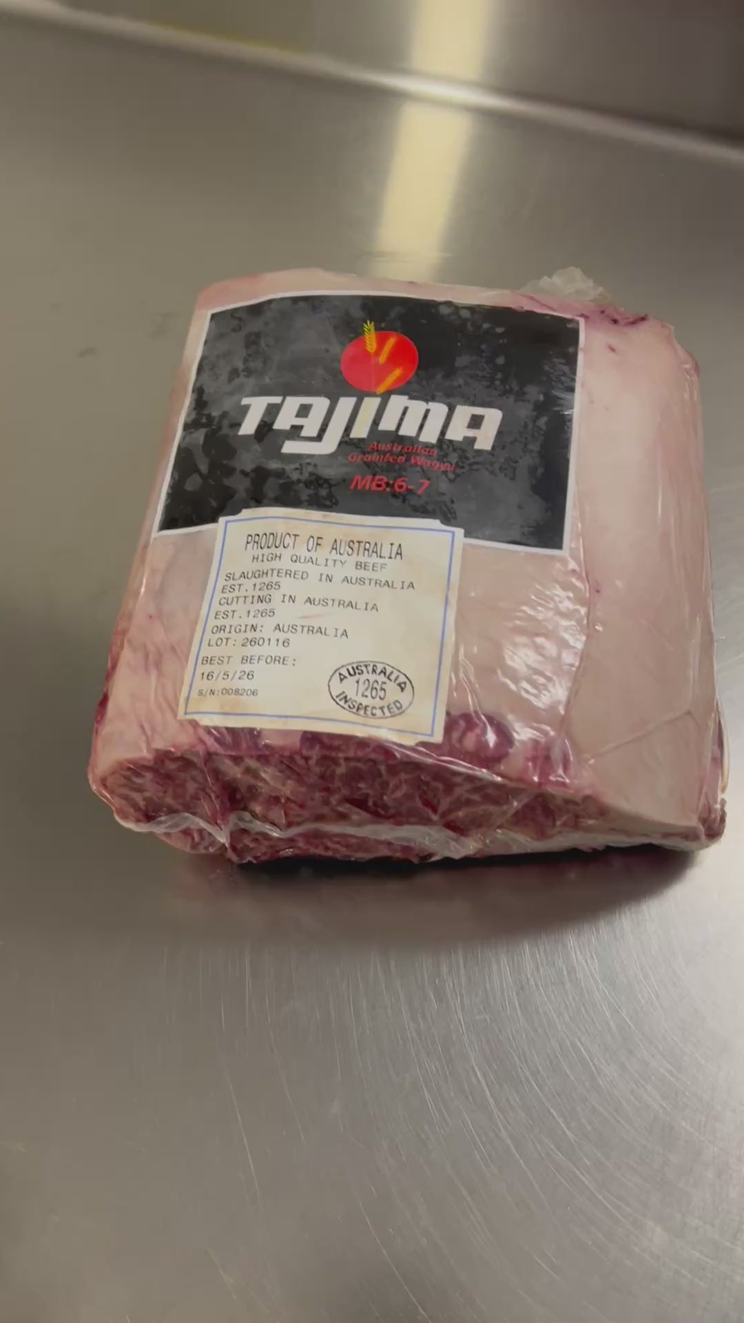 · Australijos BMS 6-7 TAJIMA Wagyu importuota iš Riverina, Naujojo Pietų Velso valstijos.